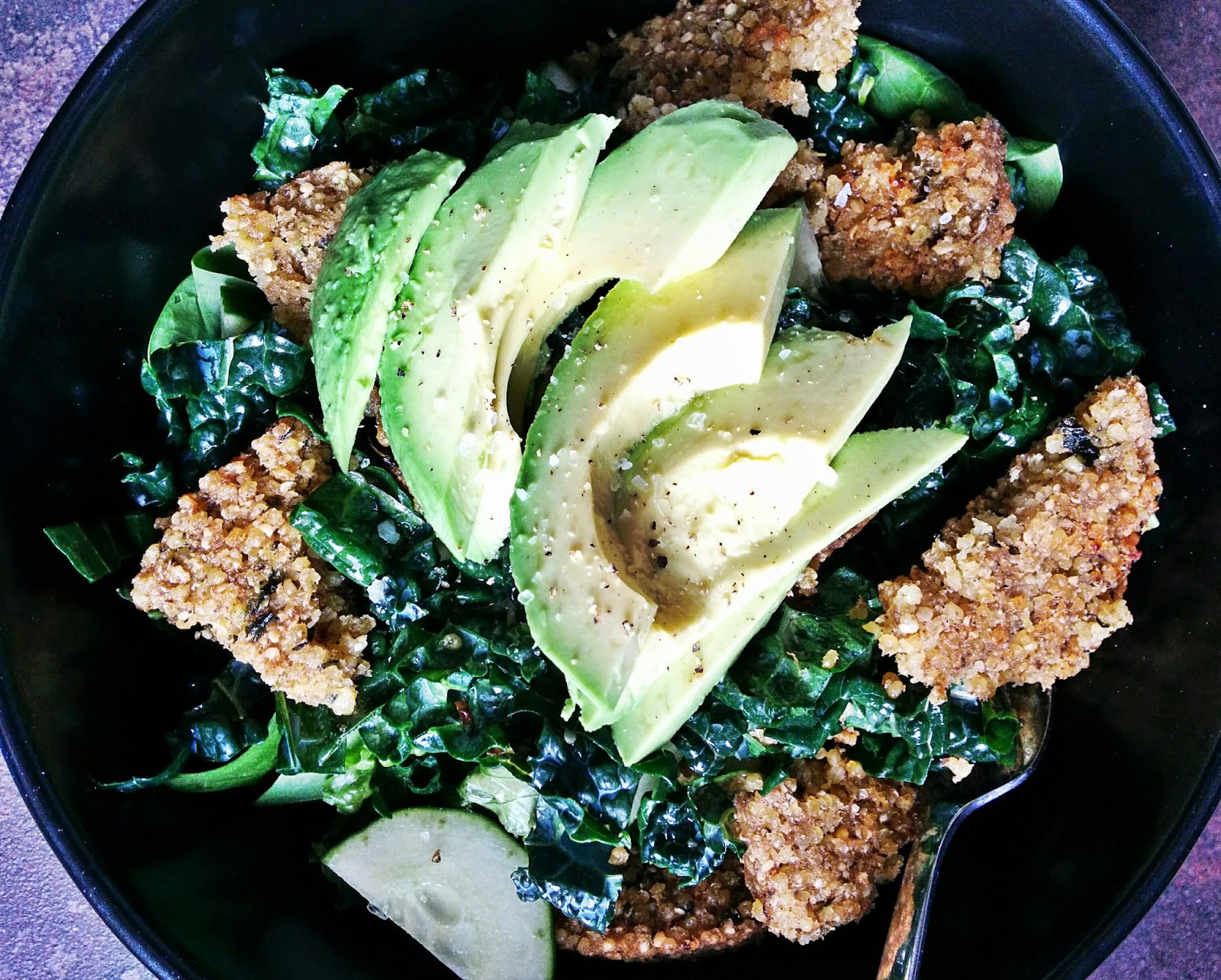 Mixed it all with some spinach, green leaf lettuce and cucumber.